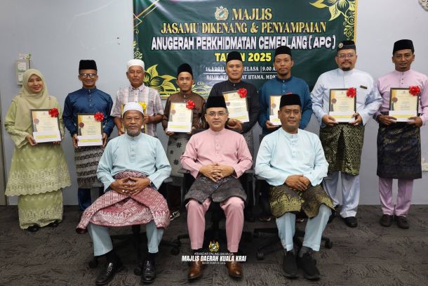 Majlis Daerah Kuala Krai (MDKK) telah mengadakan Majlis Jasamu Dikenang dan Penyampaian Anugerah Perkhidmatan Cemerlang (APC) 2025 yang berlangsung di Bilik Mesyuarat Utama, MDKK dan disempurnakan oleh YABrs. Yang DiPertua MDKK.