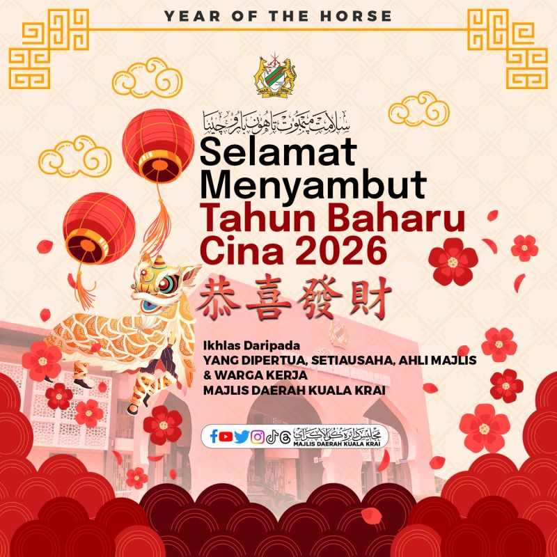 Majlis Daerah Kuala Krai (MDKK) mengucapkan Selamat Tahun Baharu Cina kepada seluruh masyarakat Tionghoa yang meraikannya.